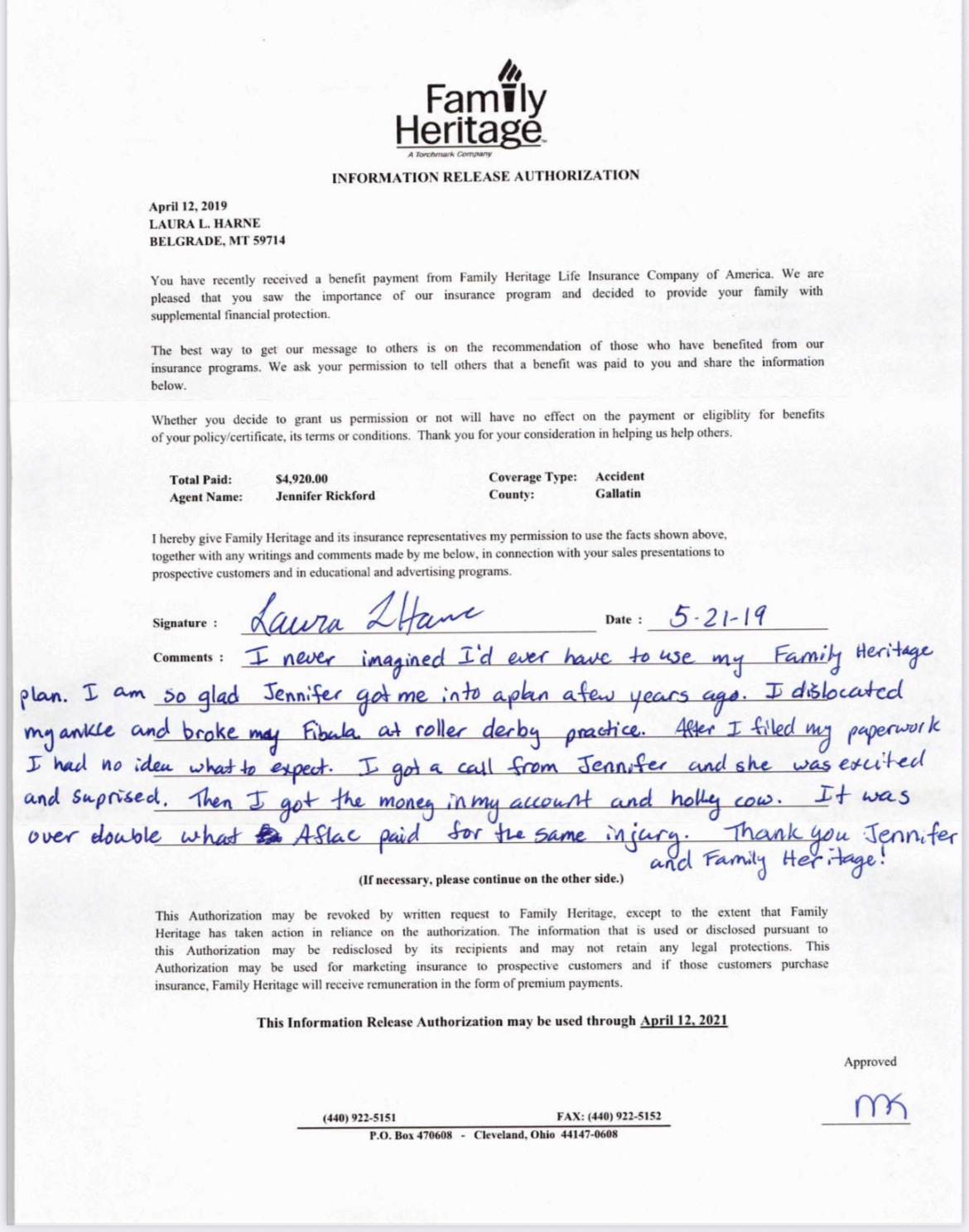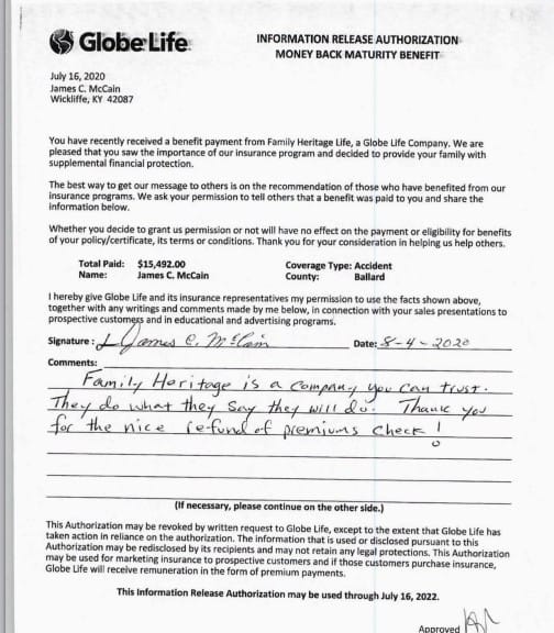 We are a proud enterprise within the Family Heritage division of Globe Life, a company with a 36-year legacy of service and protection.